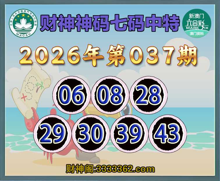 037期:『财神神码』 🤡七码中特🤡【06.08.28.29.30.39.43】开:43
