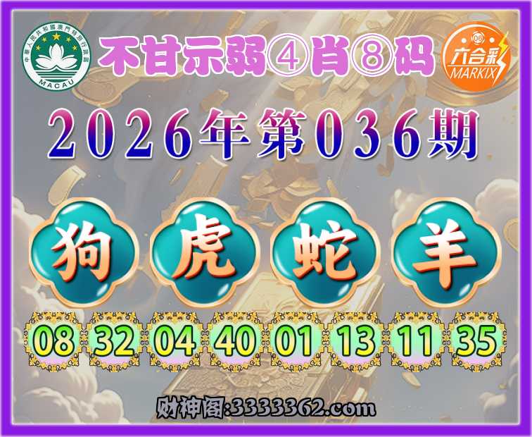 036期: 🀄『不甘示弱』 🀄④肖⑧码🀄【狗虎羊】开:蛇01