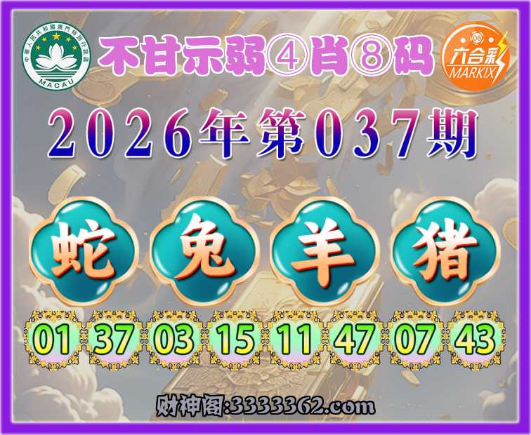 037期: 🀄『不甘示弱』 🀄④肖⑧码🀄【蛇兔羊】开:猪43
