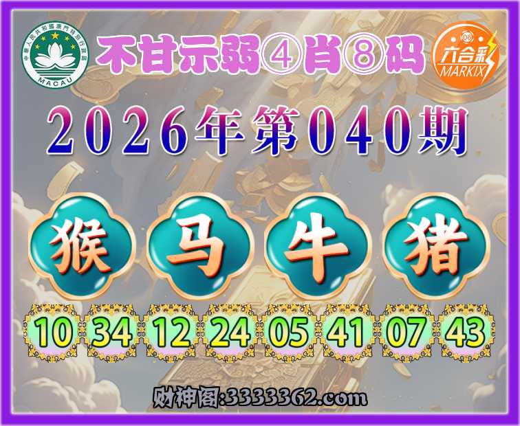 040期: 🀄『不甘示弱』 🀄④肖⑧码🀄【猴马牛猪】开:00准