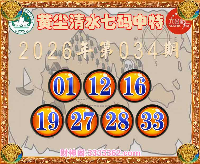 034期: 黄尘清水 🚵‍♀️七码中特🚵‍♀️【01.12.16.19.27.28.33】开:19