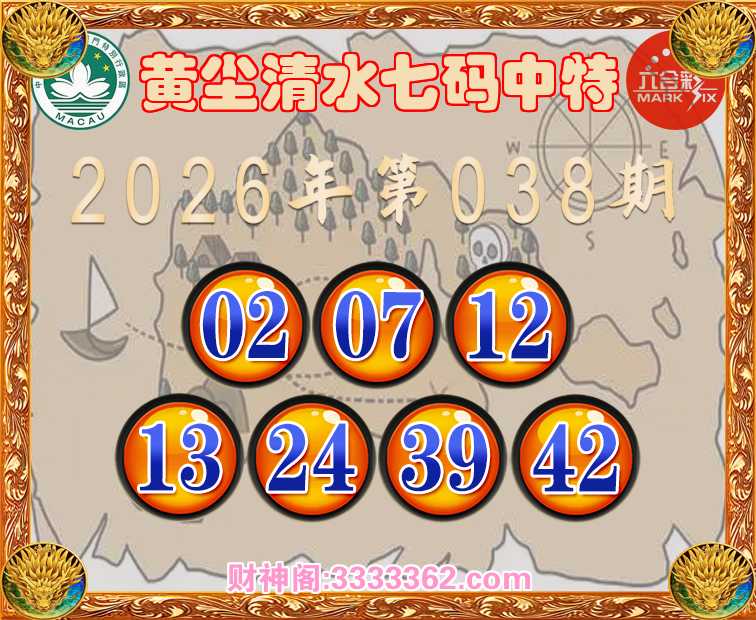038期: 黄尘清水 🚵‍♀️七码中特🚵‍♀️【02.07.12.13.24.39.42】开:42