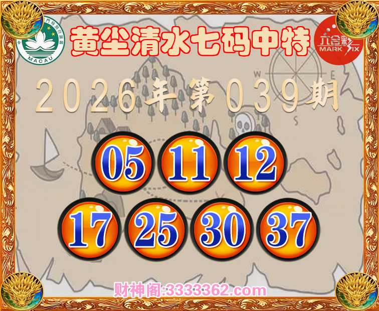039期: 黄尘清水 🚵‍♀️七码中特🚵‍♀️【05.11.12.17.25.30.37】开:11