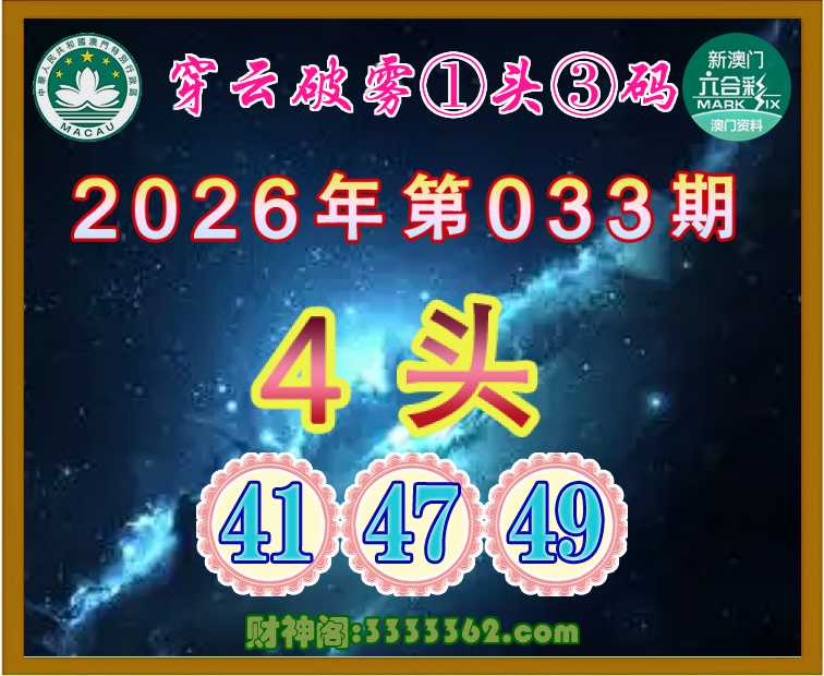 033期:《穿云破雾》 🎆①头③码🎆【4头主:41.47.49】开:牛41