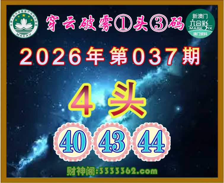037期:《穿云破雾》 🎆①头③码🎆【4头主:40.43.44】开:猪43