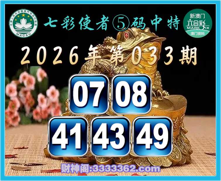 033期:《七彩使者》 ☝️⑤码中特☝️【07.08.41.43.49】开:41
