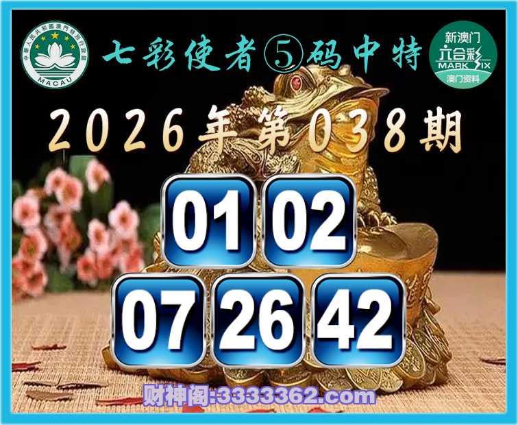 038期:《七彩使者》 ☝️⑤码中特☝️【01.02.07.26.42】开:42
