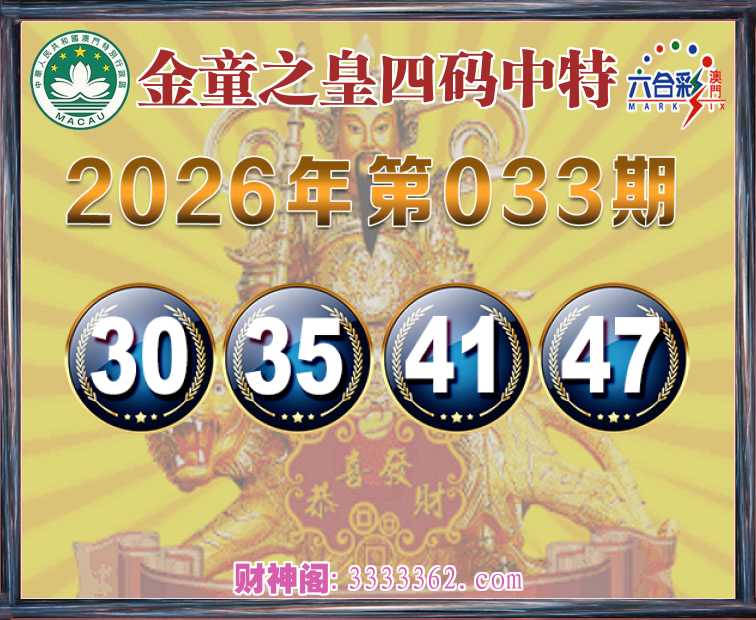 033期:『金童之皇』 🍙四码中特🍙【30.35.41.47】开:41