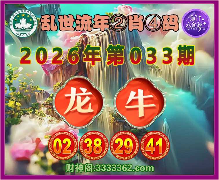 033期:〖乱世流年〗②肖④码⚽【龙】【02.38.29.41】开:牛41