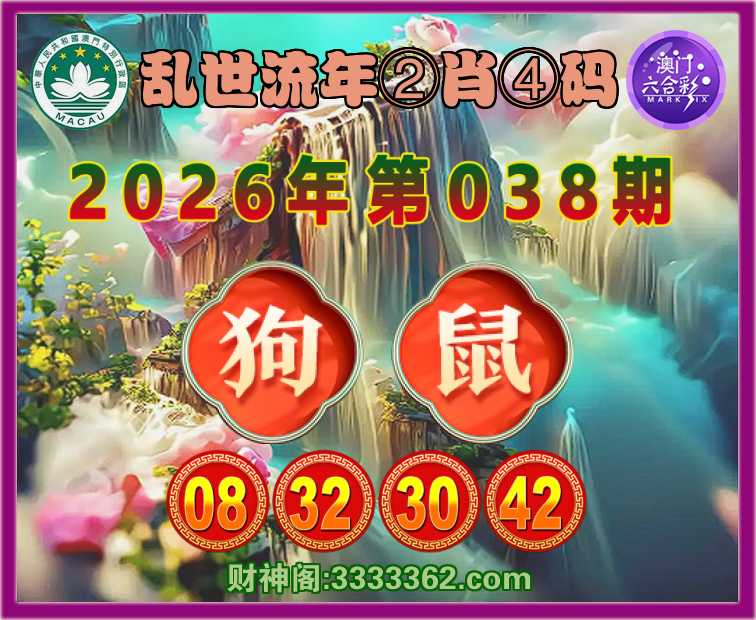 038期:〖乱世流年〗②肖④码⚽【狗】【08.32.30.42】开:鼠42