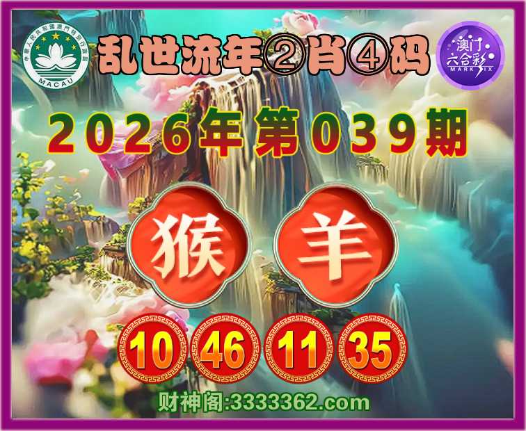 039期:〖乱世流年〗②肖④码⚽【猴】【10.46.11.35】开:羊11