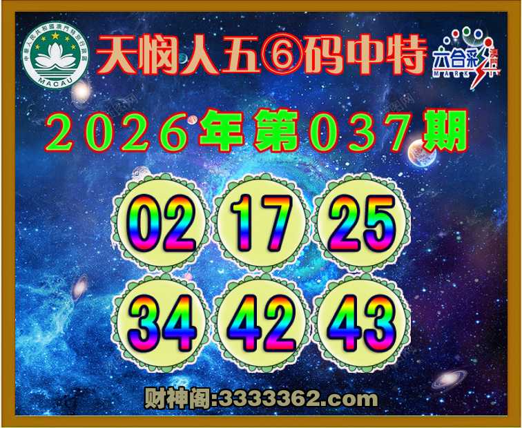 037期:《天悯人五》 🚲⑥码中特🚲【02.17.25.34.42.43】开:43