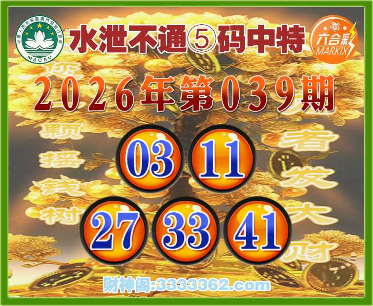 039期:【水泄不通】 😍⑤码中特😍【03.11.27.33.41】开:11