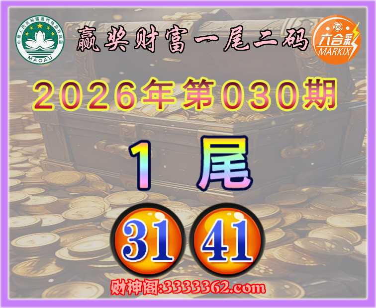 030期:【赢奖财富】 👈一尾二码👈【1尾主:31.41】开:41