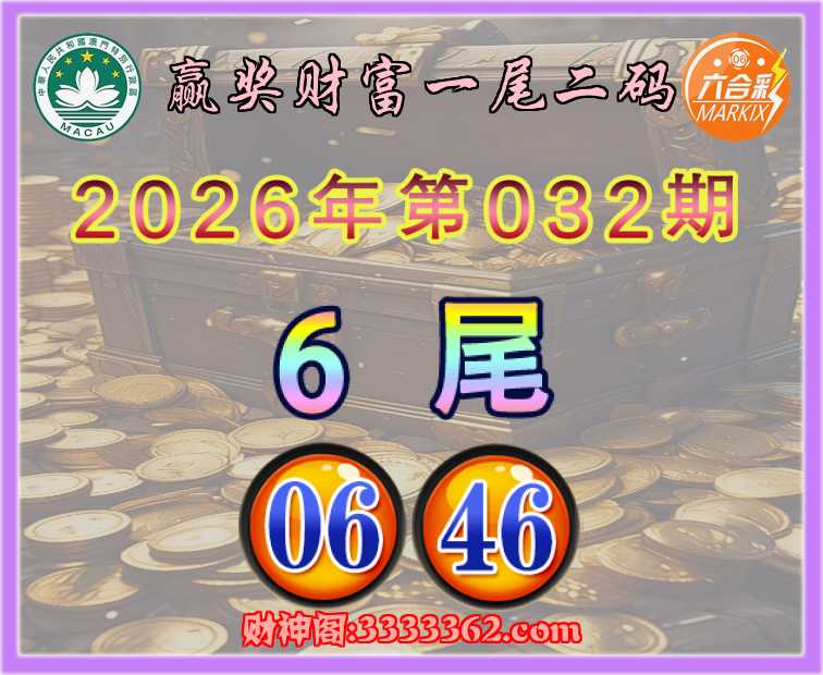 032期:【赢奖财富】 👈一尾二码👈【6尾主:06.46】开:06