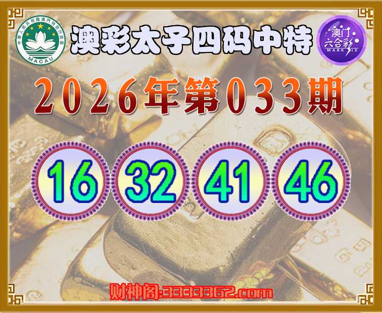 033期:《澳彩太子》 🏅四码中特🏅【16.32.41.46】开:41