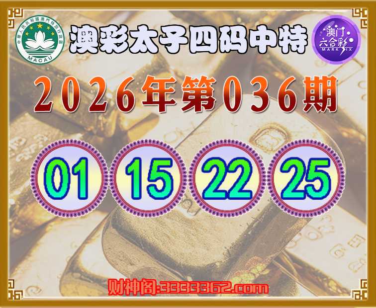 036期:《澳彩太子》 🏅四码中特🏅【01.15.22.25】开:01