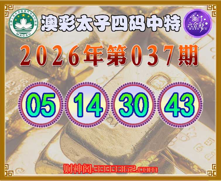 037期:《澳彩太子》 🏅四码中特🏅【05.14.30.43】开:43