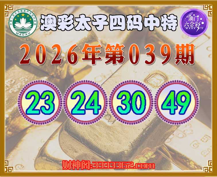 039期:《澳彩太子》 🏅四码中特🏅【23.24.30.49】开:00准