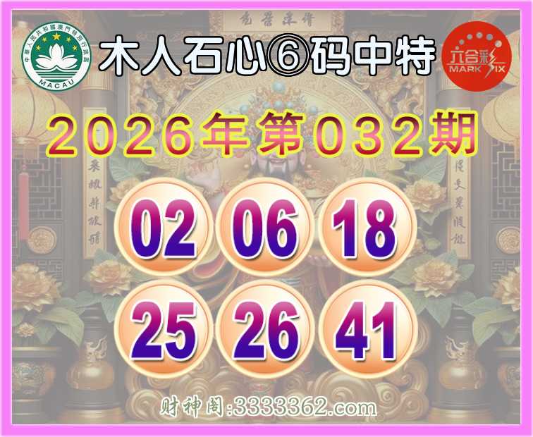 032期:『木人石心』 🍕⑥码中特🍕【02.06.18.25.26.41】开:06