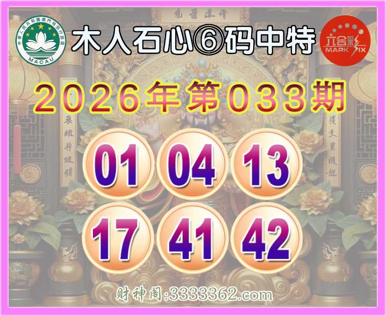 033期:『木人石心』 🍕⑥码中特🍕【01.04.13.17.41.42】开:41