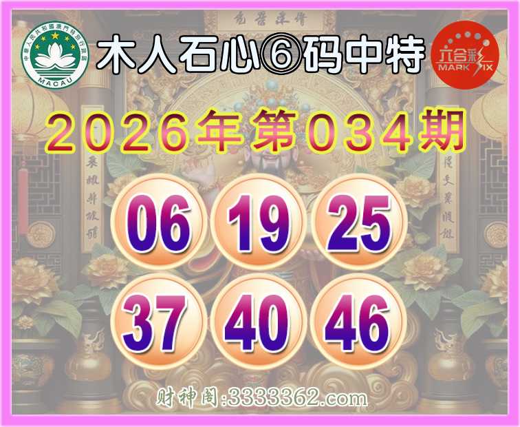 034期:『木人石心』 🍕⑥码中特🍕【06.19.25.37.40.46】开:19