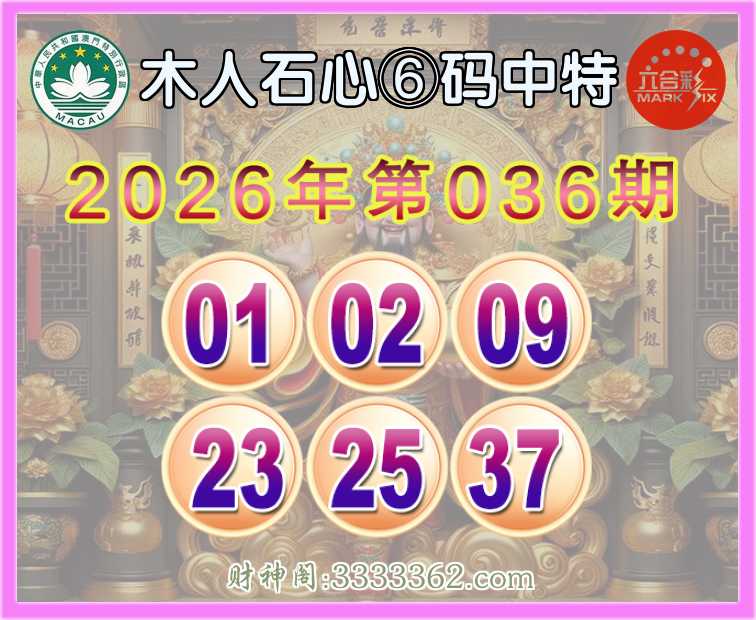 036期:『木人石心』 🍕⑥码中特🍕【01.02.09.23.25.37】开:01