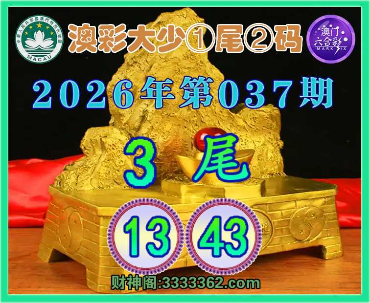 037期:〖澳彩大少〗 🪢①尾②码🪢【3尾主:13.43】开:43