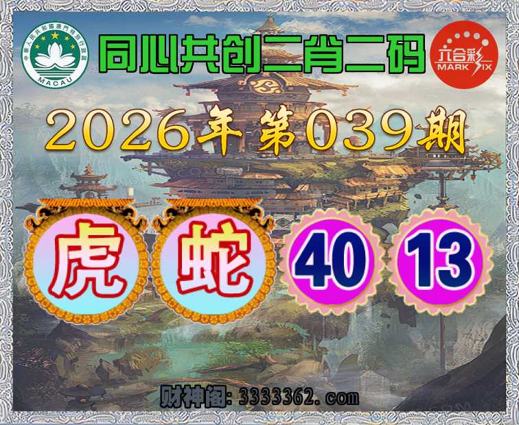 039期:『同心共创』 📸二肖二码📸【虎蛇】【40.13】开:00准