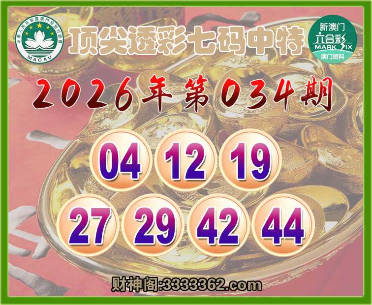 034期:【顶尖透彩】 🥖七码中特🥖【04.12.19.27.29.42.44】开:19