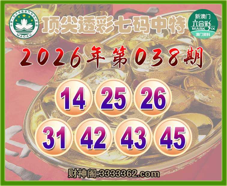 038期:【顶尖透彩】 🥖七码中特🥖【14.25.26.31.42.43.45】开:42