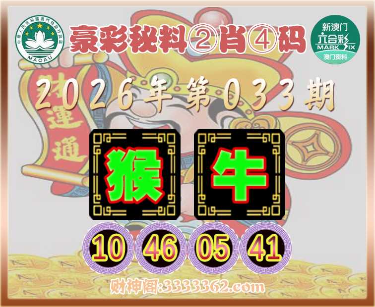 033期:【豪彩秘料】 👑②肖④码👑【猴】【10.46.05.41】开:牛41