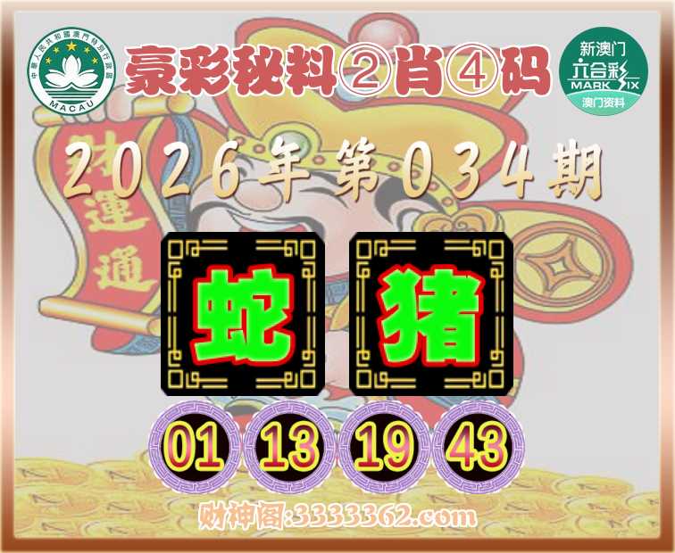 034期:【豪彩秘料】 👑②肖④码👑【蛇】【01.13.19.43】开:猪19