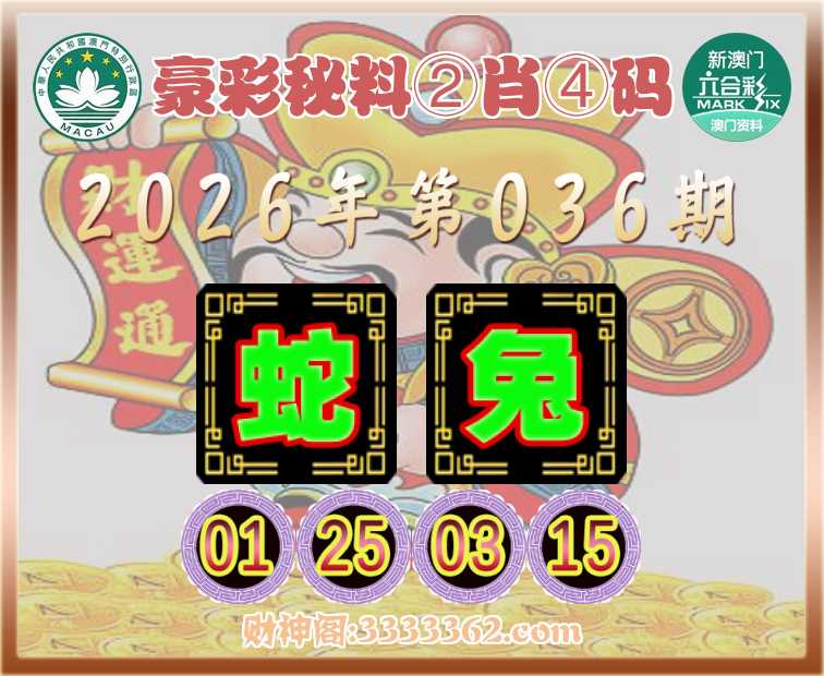 036期:【豪彩秘料】 👑②肖④码👑【兔】【01.25.03.15】开:蛇01