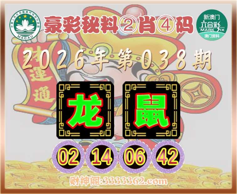 038期:【豪彩秘料】 👑②肖④码👑【龙】【02.14.06.42】开:鼠42