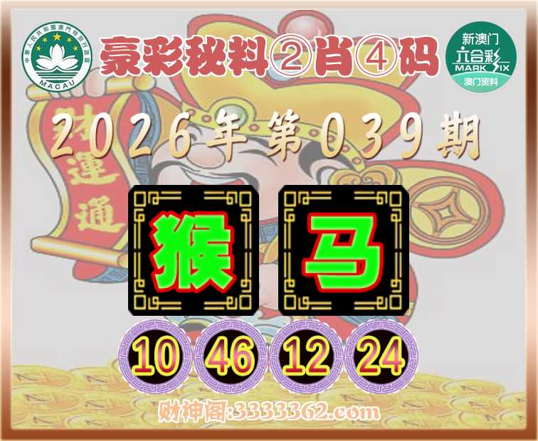 039期:【豪彩秘料】 👑②肖④码👑【猴马】【10.46.12.24】开:00准