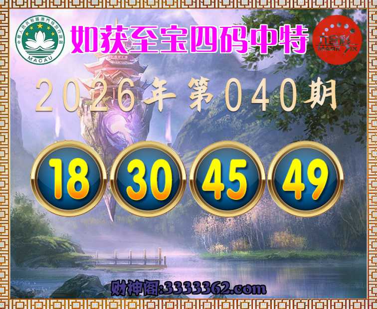 040期:【如获至宝】 👩‍🌾四码中特👩‍🌾【18.30.45.49】开:00准