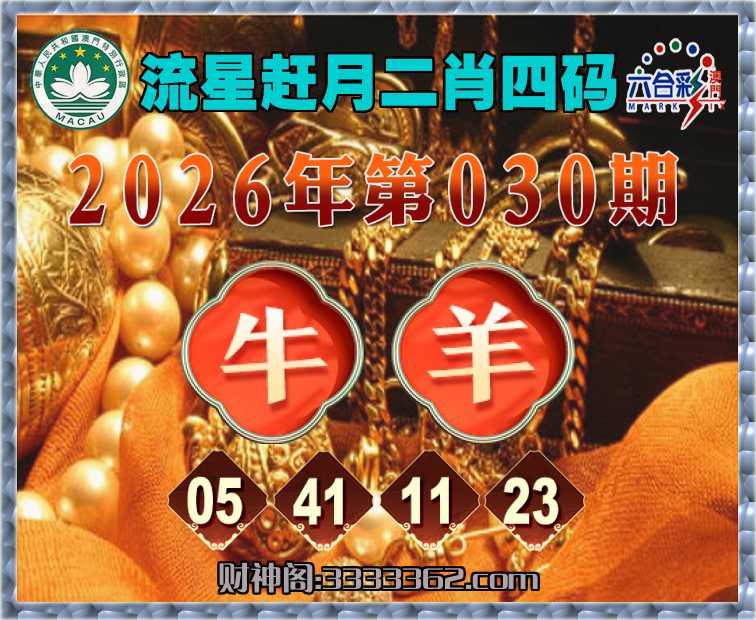 030期:【流星赶月】 ⛩️二肖四码⛩️【羊】【05.41.11.23】开:牛41