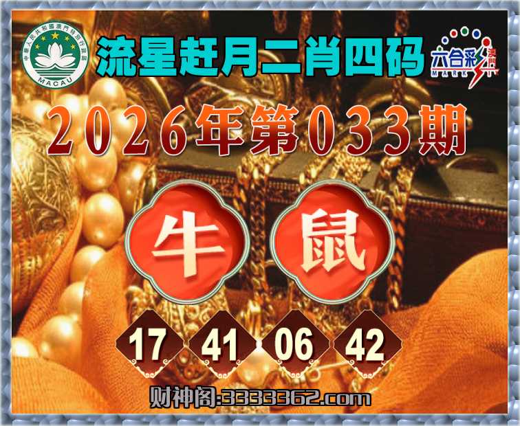033期:【流星赶月】 ⛩️二肖四码⛩️【鼠】【17.41.06.42】开:牛41