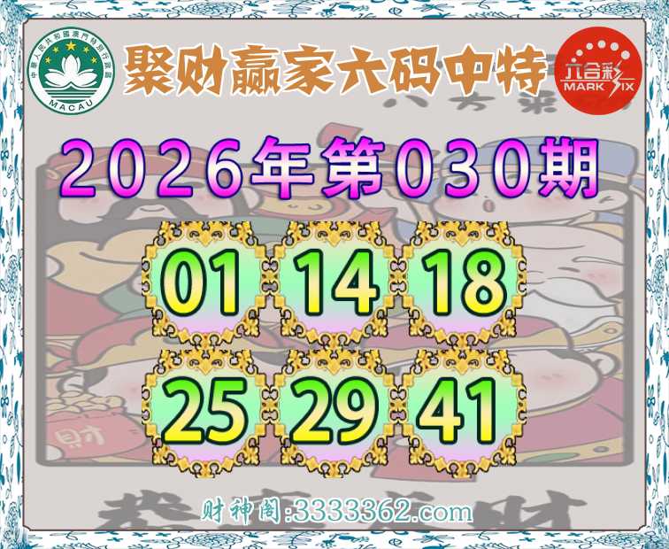 030期:《聚财赢家》 👑六码中特👑【01.14.18.25.29.41】开:41