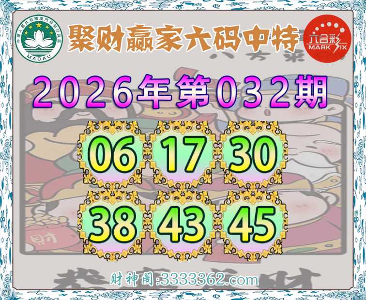 032期:《聚财赢家》 👑六码中特👑【06.17.30.38.43.45】开:06