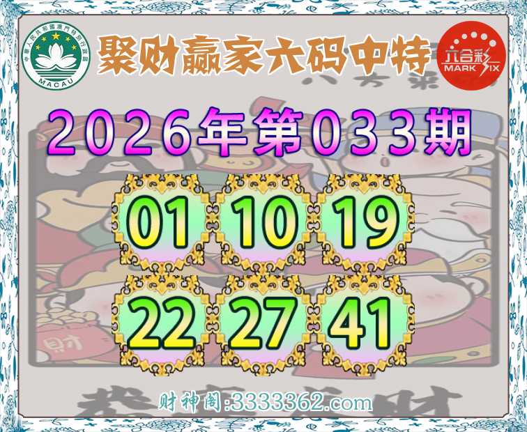 033期:《聚财赢家》 👑六码中特👑【01.10.19.22.27.41】开:41