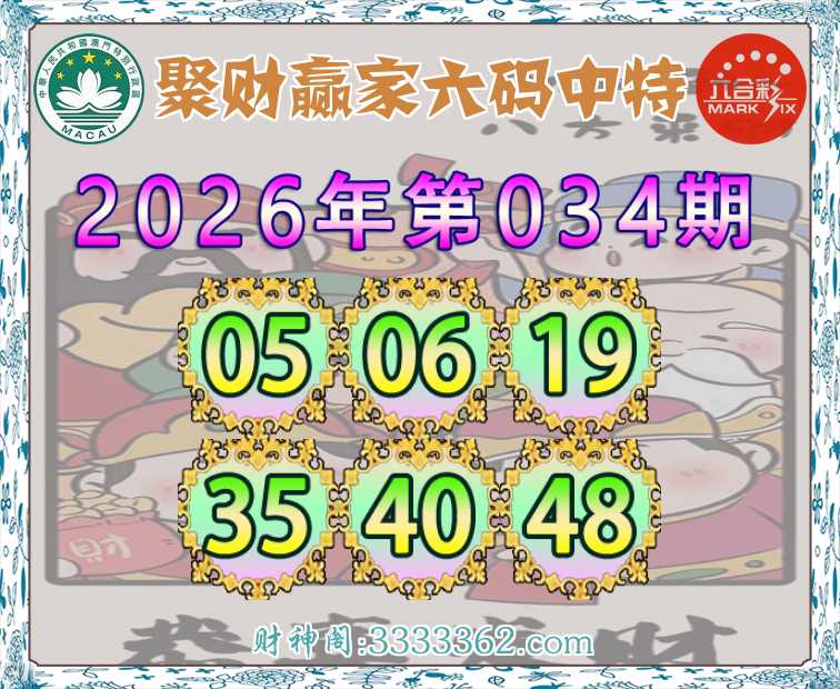 034期:《聚财赢家》 👑六码中特👑【05.06.19.35.40.48】开:19