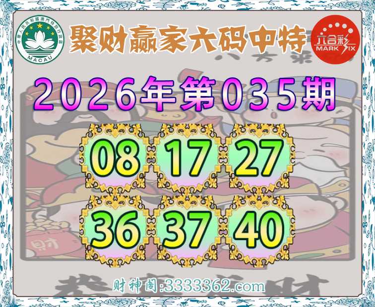 035期:《聚财赢家》 👑六码中特👑【08.17.27.36.37.40】开:27