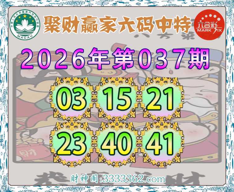 037期:《聚财赢家》 👑六码中特👑【03.15.21.23.40.41】开:00准