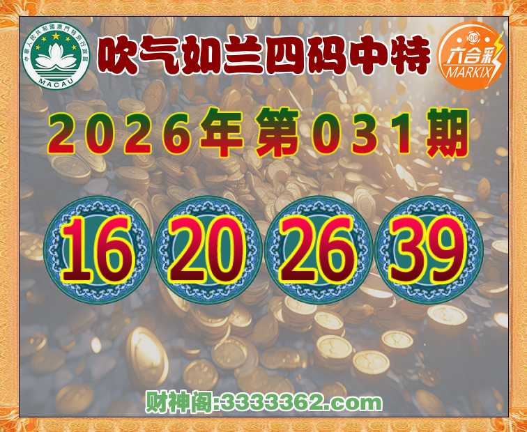 031期:〖吹气如兰〗 🏃‍♀️四码中特🏃‍♀️【16.20.26.39】开:26