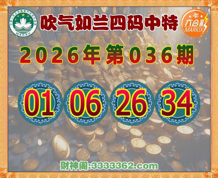 036期:〖吹气如兰〗 🏃‍♀️四码中特🏃‍♀️【01.06.26.34】开:01