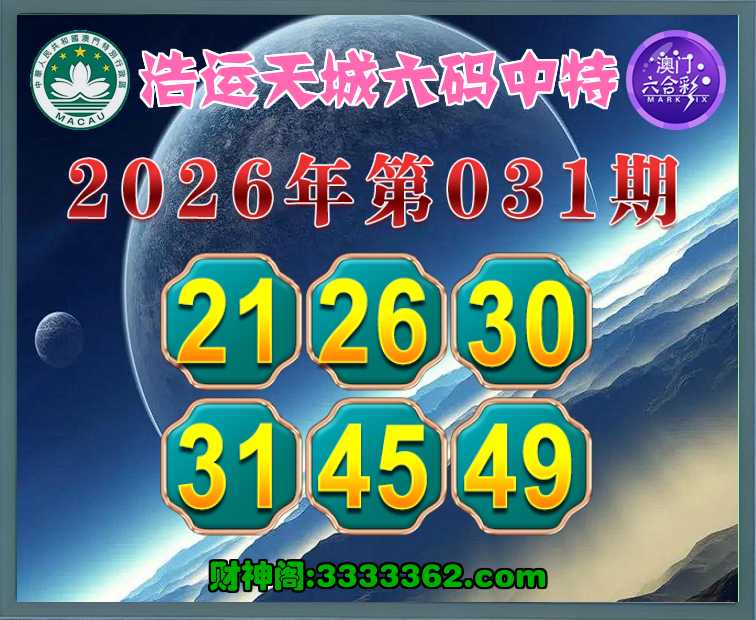 031期: 🚣『浩运天城』 🚣六码中特🚣【21.26.30.31.45.49】开:26
