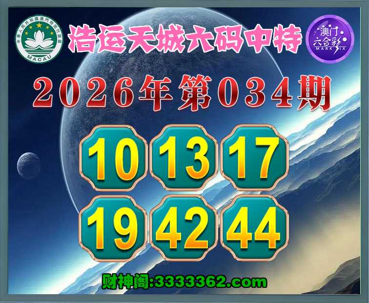 034期: 🚣『浩运天城』 🚣六码中特🚣【10.13.17.19.42.44】开:19