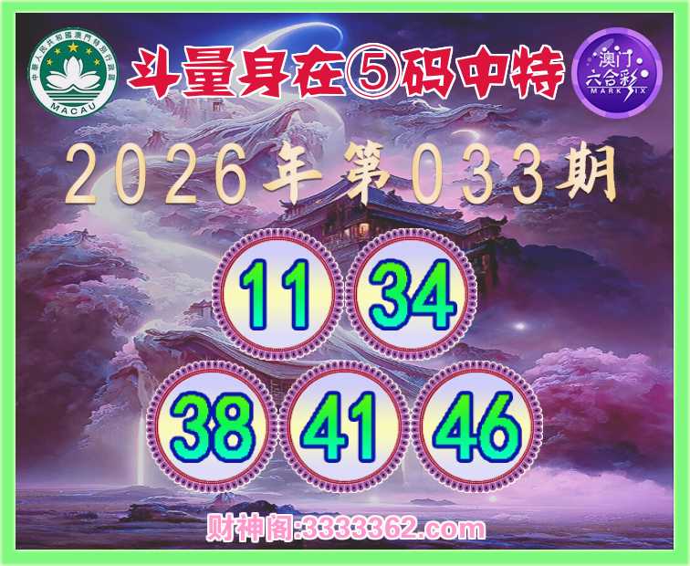 033期:『斗量身在』 ♥️⑤码中特♥️【11.34.38.41.46】开:41
